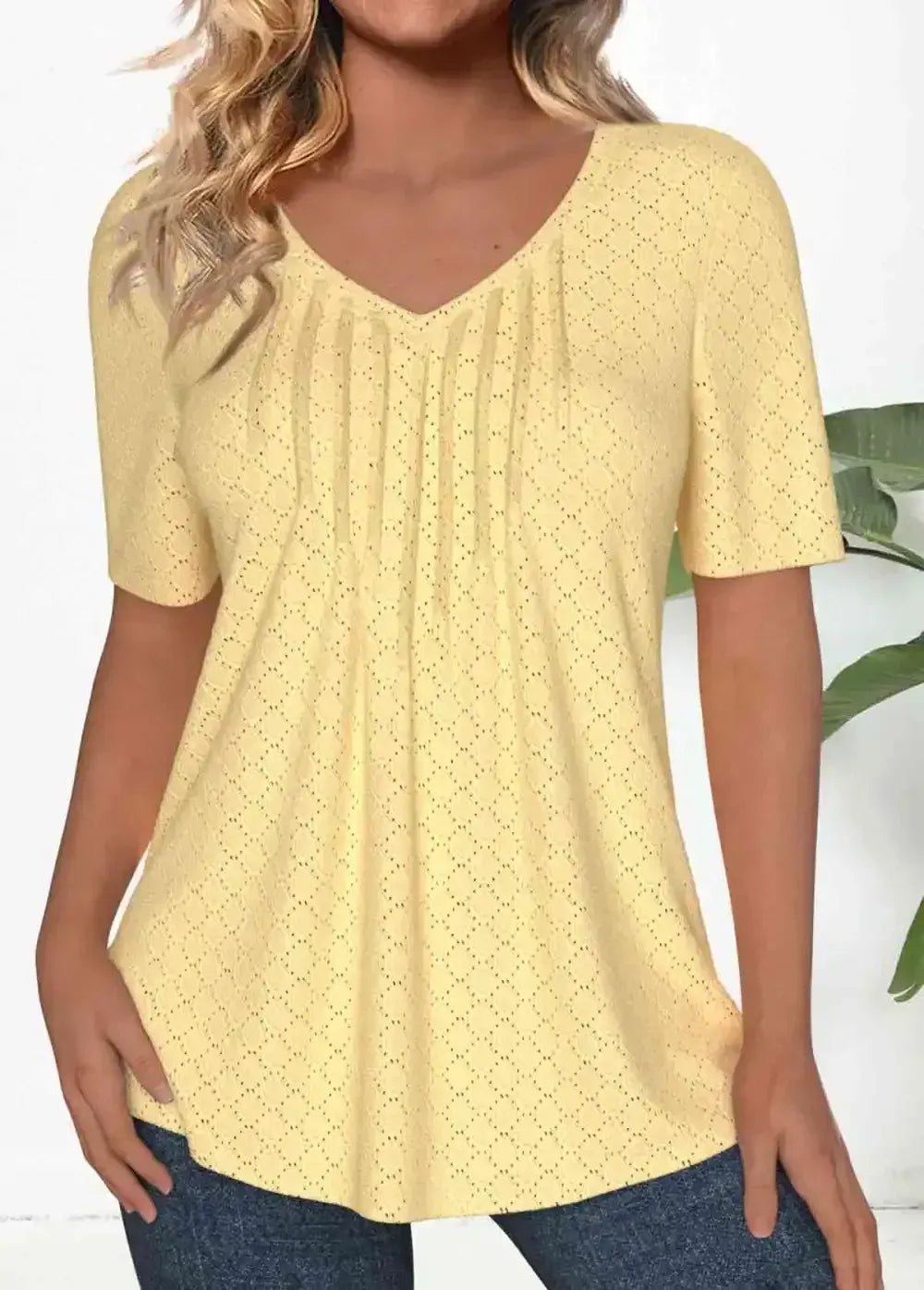 Light Yellow Textured Fabric Short Sleeve T Shirt