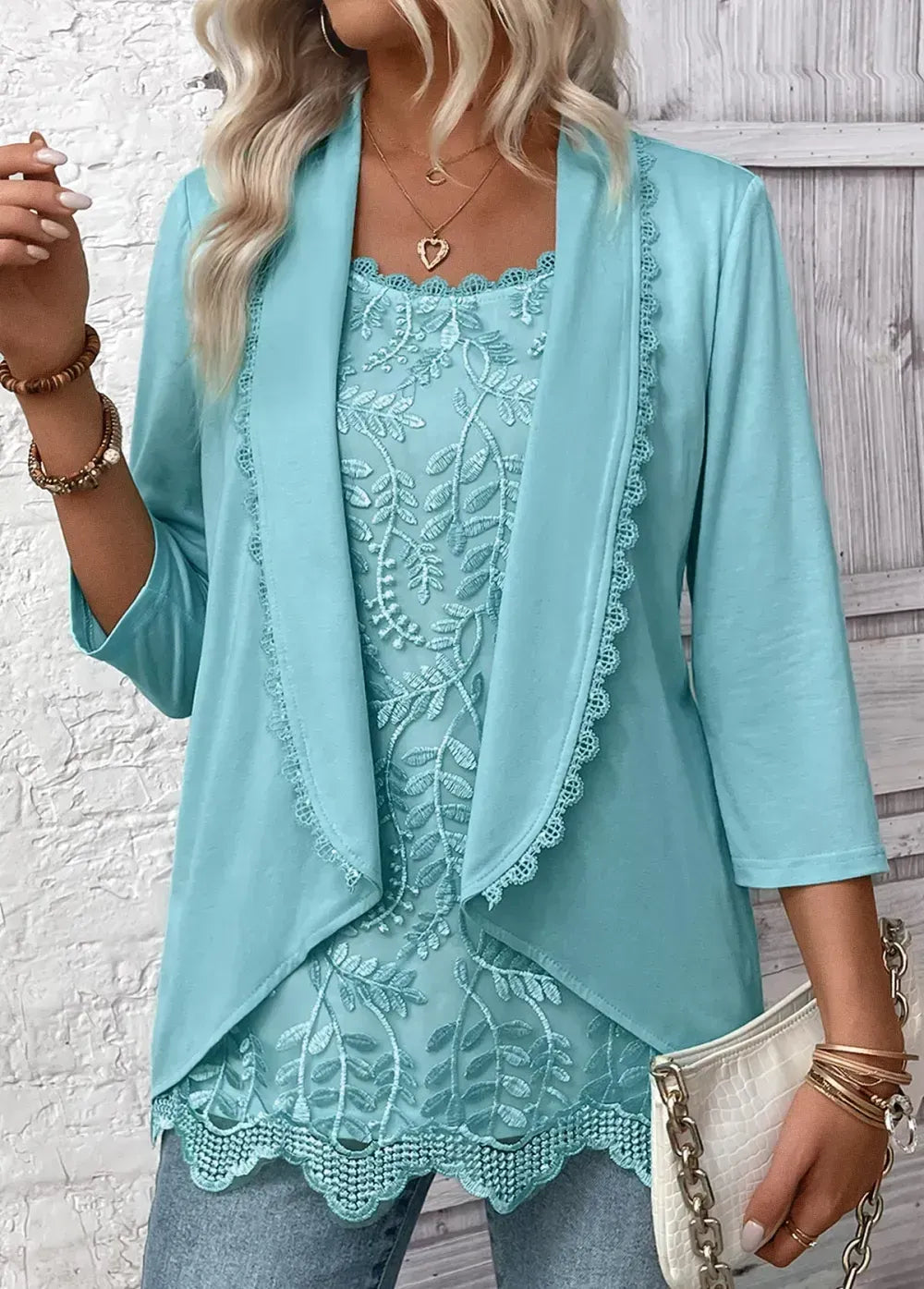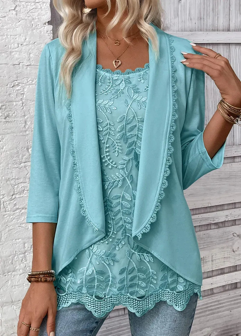 Mint Green Lace 3/4 Sleeve Square Neck T Shirt