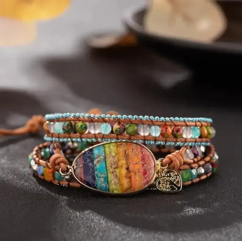 Natural 7 Chakra Gemstone Bracelet-Fearless Anxiety Stress Relief Bracelet-Emotional Healing Mental Health Confidence Strength Bracelet