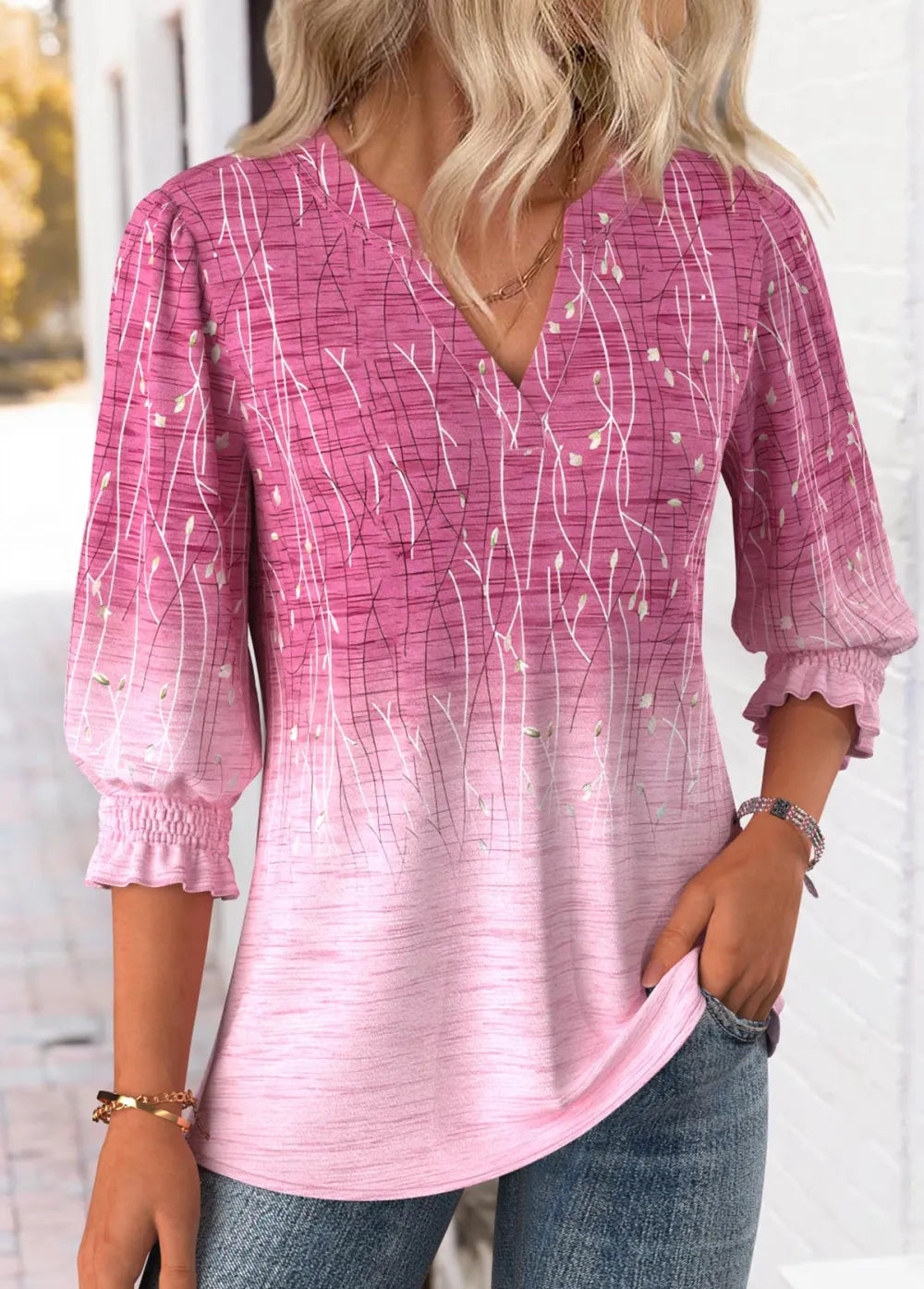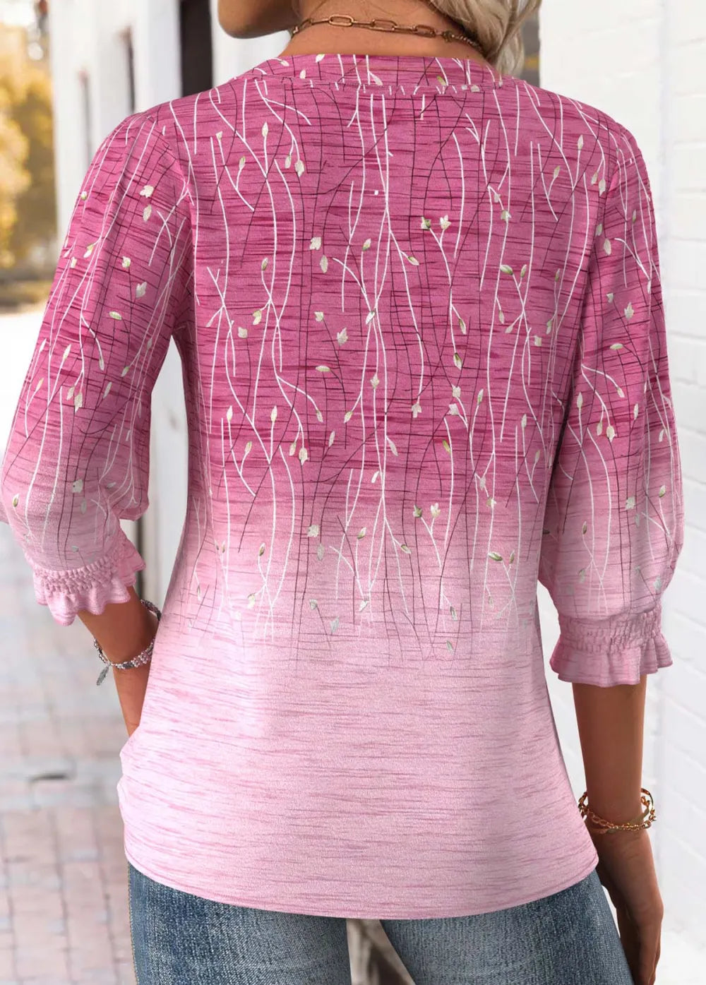 Pink Ombre 3/4 Sleeve Round Neck Blouse