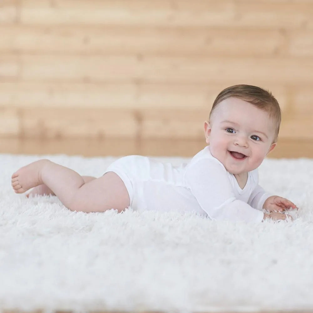Your little one will be ready for whatever you have in store in these pure white Onesies® brand long sleeve bodysuits. Great for layering in the cooler months. The cotton rib makes for a comfortable fit, while smart design features like an expandable lap neckline and snap closure make changing fast and easy!