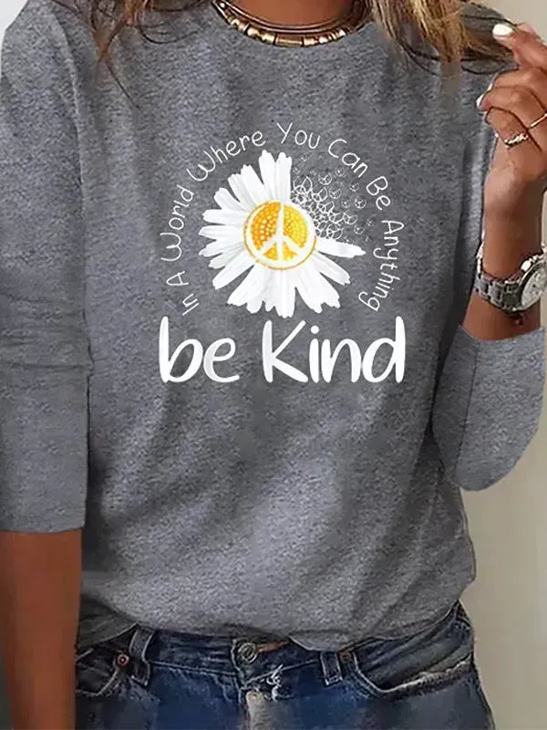 Women Casual Autumn Daisy Daily Loose Long sleeve Crew Neck Regular H-Line T-shirt