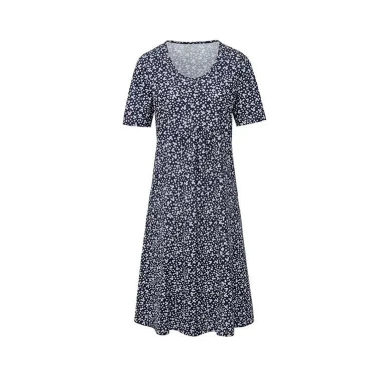 跨境欧美法式度假风 2020新款圆领短袖碎花中长款连衣裙