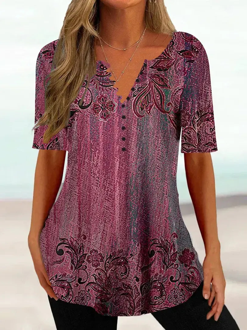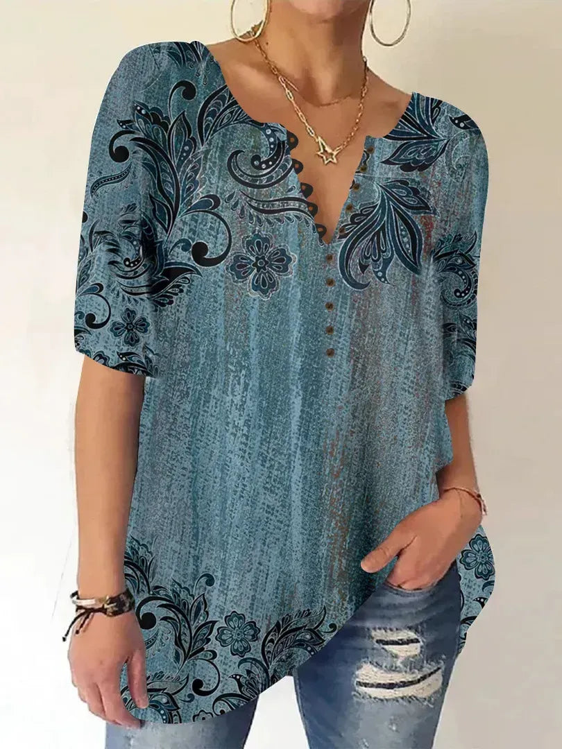 Women Half Sleeve V-neck Floral Printed Tops