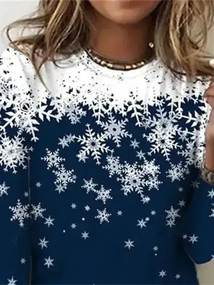 Women Long Sleeve Scoop Neck Printed Christmas Tops