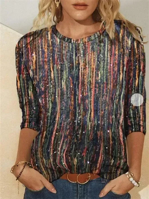 Women Long Sleeve Scoop Neck Printed Gradient Top
