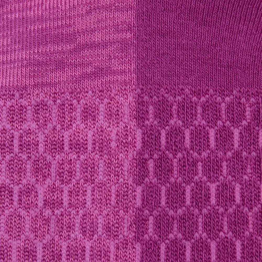 These socks were made with a random feed dye technique, where a single yarn is dyed at random intervals to create textural color variations. This creates unexpected patterns that resemble the natural texture of mountains and rocks. And naturally, these have all our classic comfort features too, like built-in arch support, a blister-fighting tab, and a Seamless Toe.