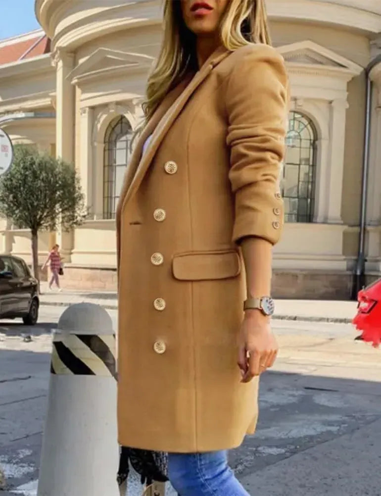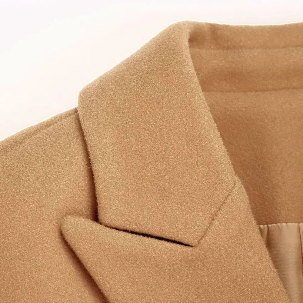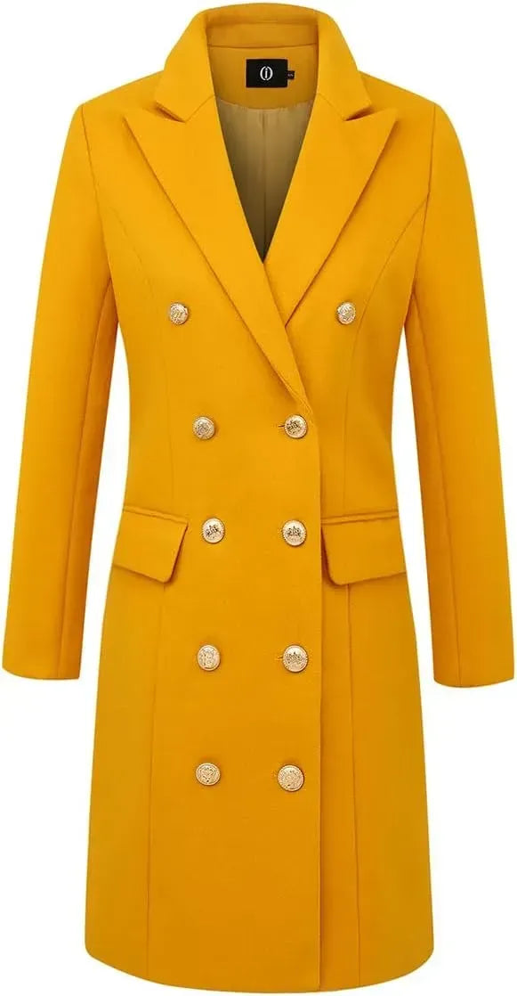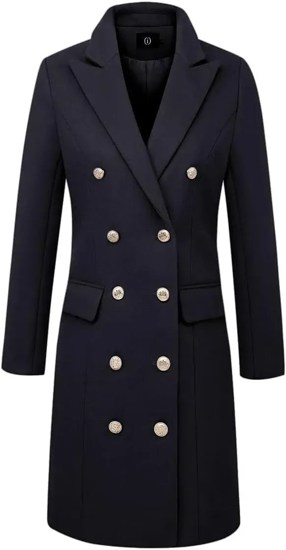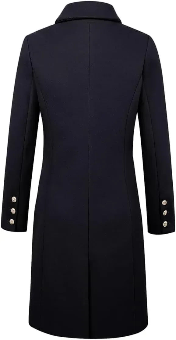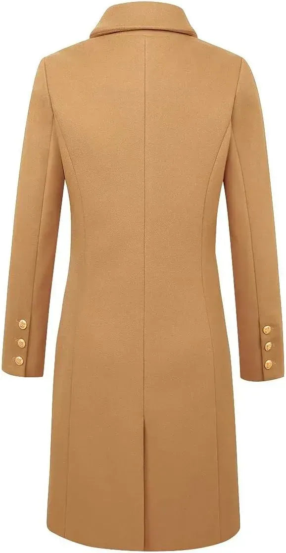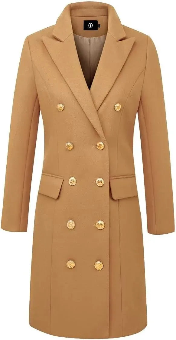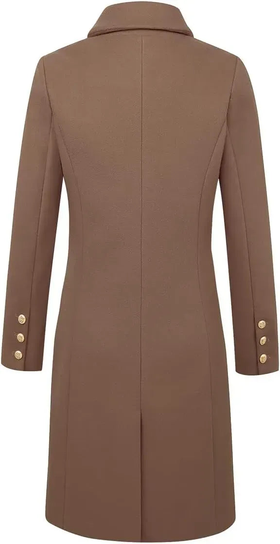 Womens Fall Winter Wool Coats Double Breasted Midi Peacoat Trench Coats