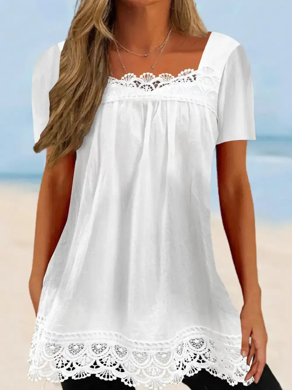 Women's Lace Short Sleeve U-neck Top