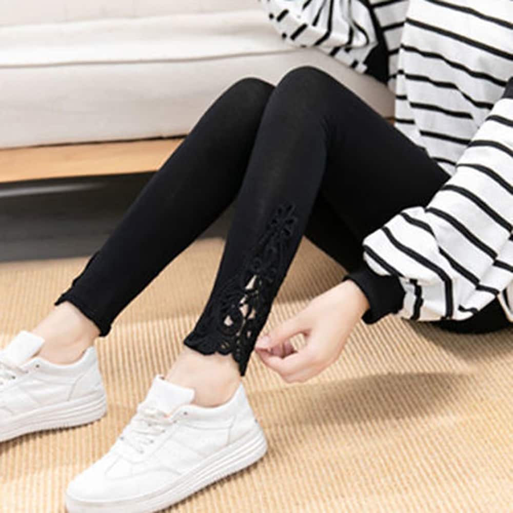 Gender:Women's,Pants Type:Leggings,Style:Fashion,Occasion:Casual Daily,Fabric:Polyester,Design:Lace,Elasticity:Stretchy,Pattern:Solid Colored,Inseam (cm):L:29;XL:29;2XL:29;3XL:29;4XL:29,Function:Comfort,Tummy Control,Butt Lift,Fit Type:Skinny,Pants Length:Ankle-Length,