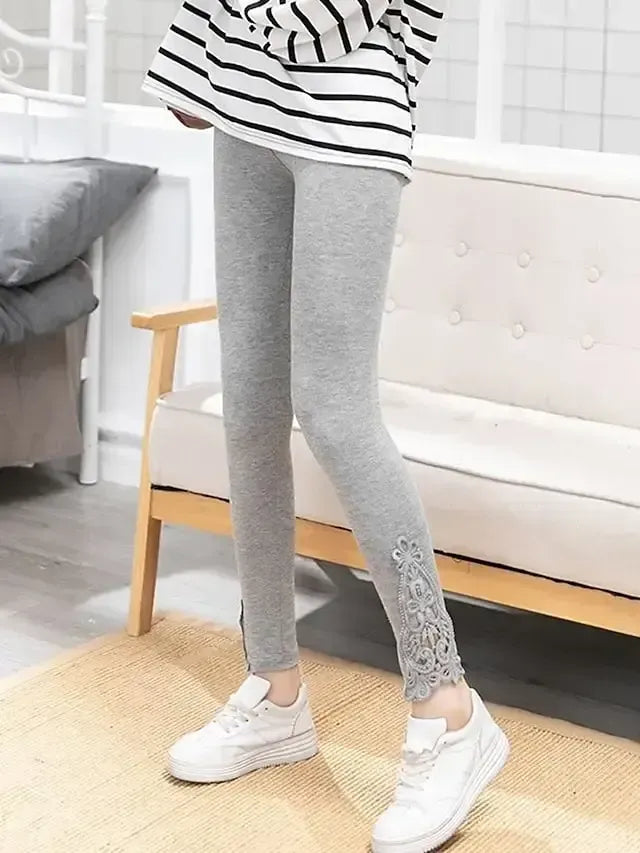 Women's Leggings Black White Grey Fashion Casual Daily Lace Ankle-Length Tummy Control Solid Colored L XL 2XL 3XL 4XL