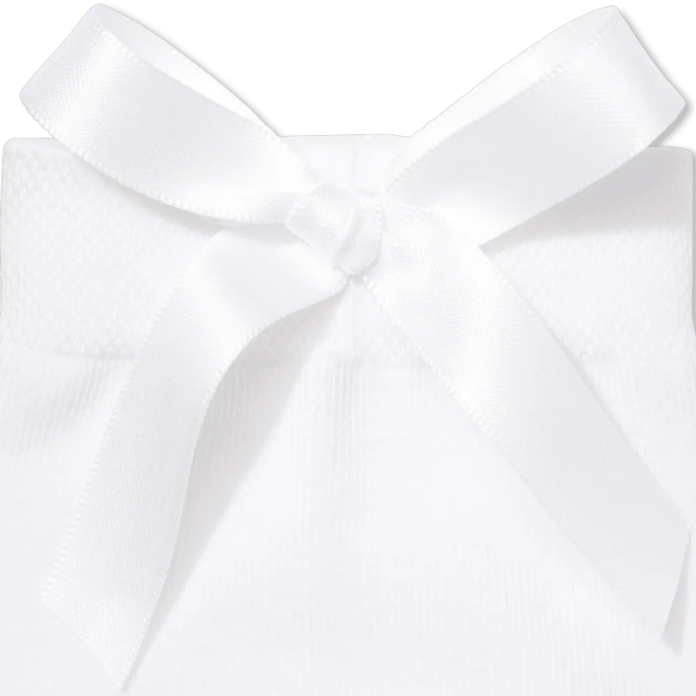 The coquette quarter of your dreams. This thinner sock looks extra femme but feels far from flimsy. Designed with our signature built-in arch support, Seamless Toe, and a secure cuff that resists sliding down (even with a satin bow sitting on top of it).