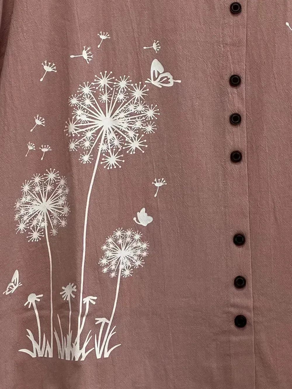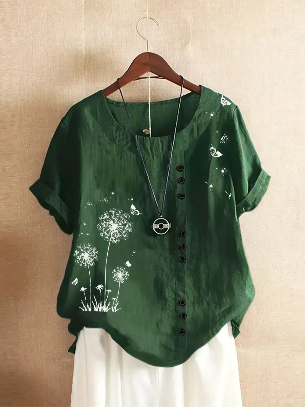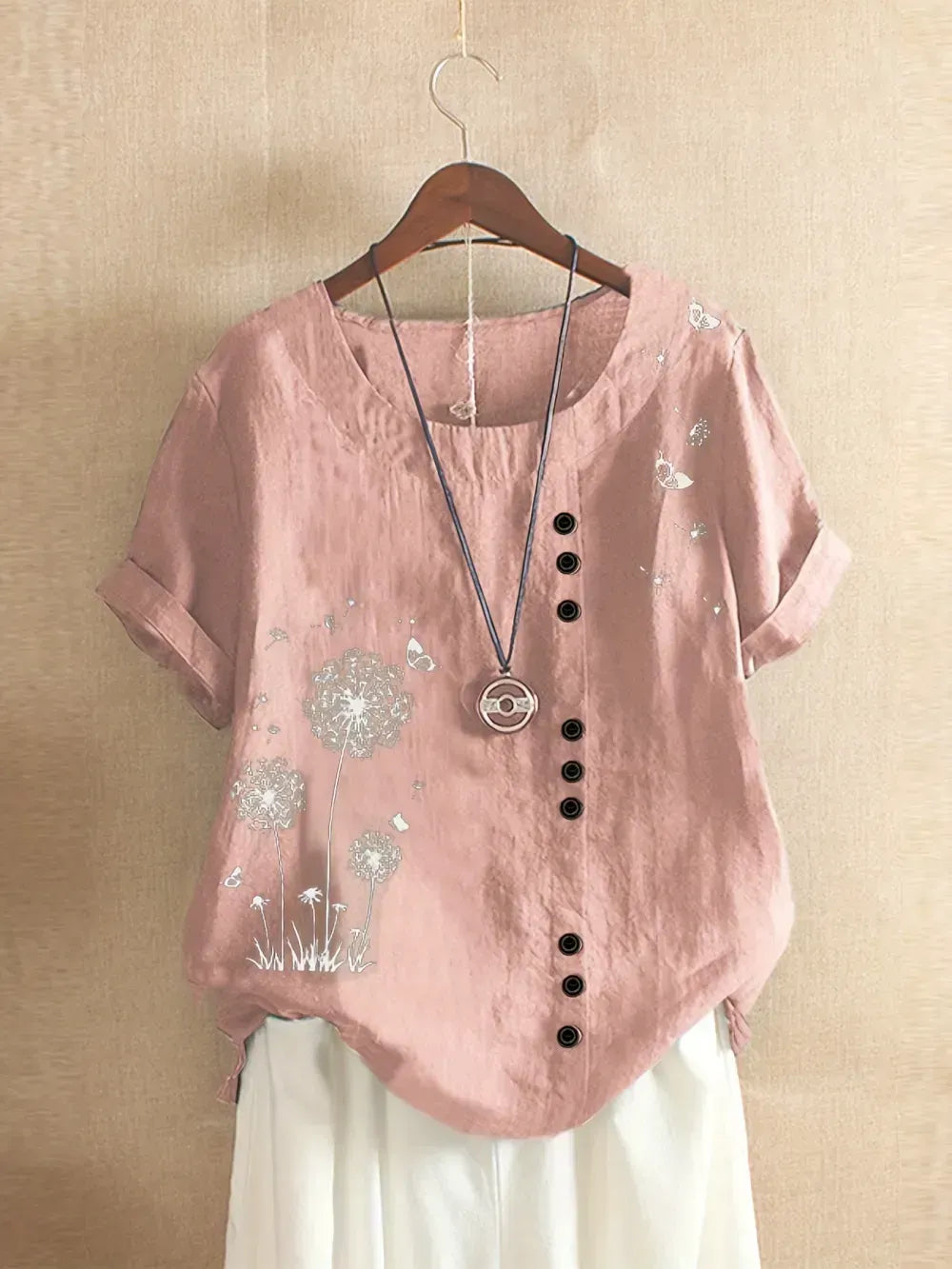 Women's Plus Dandelion Print Tee, Short Sleeve, Casual, Round Neck, Plus Size