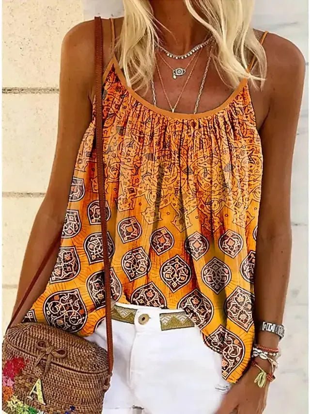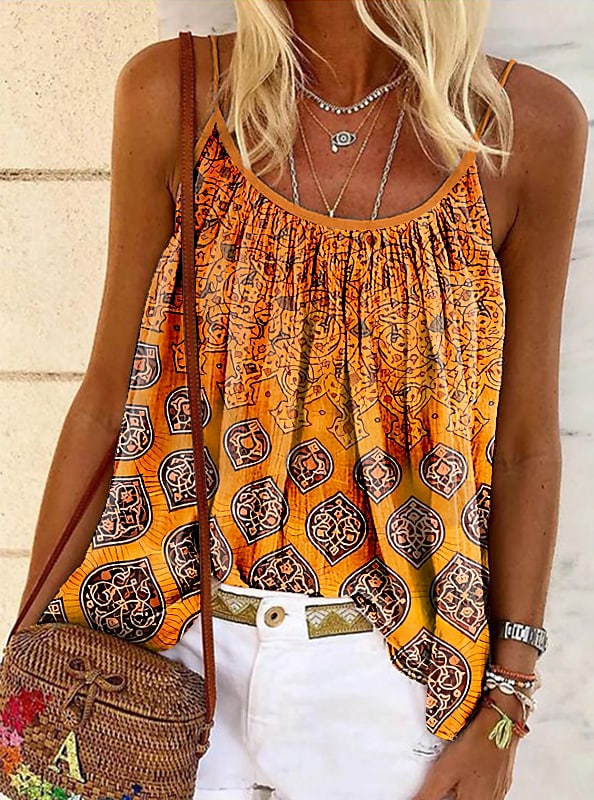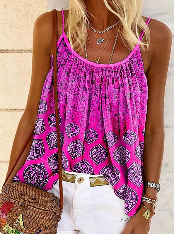 Gender:Women's,Style:Basic,Occasion:Weekend,Casual,Tops Type:Summer Tops,Tank Top,Neckline:Round Neck,Fabric:Polyester,Design:Print,Details:Without Lining,Sleeve Length:Sleeveless,Elasticity:Micro-elastic,Look After Me:Machine wash,Wet and Dry Cleaning,Washable,Top Length:Regular,Pattern:Graphic,