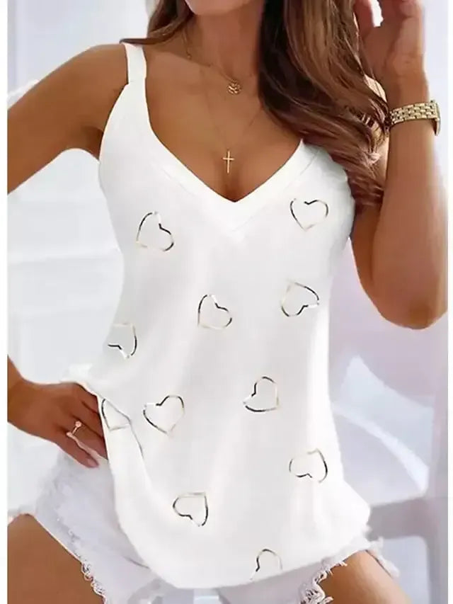 Gender:Women's,Style:Basic,Occasion:Weekend,Casual,Tops Type:Tank Top,Neckline:V Neck,Fabric:Polyester,Design:Print,Details:Without Lining,Sleeve Length:Sleeveless,Elasticity:Micro-elastic,Look After Me:Machine wash,Wet and Dry Cleaning,Washable,Top Length:Regular,Pattern:Heart,