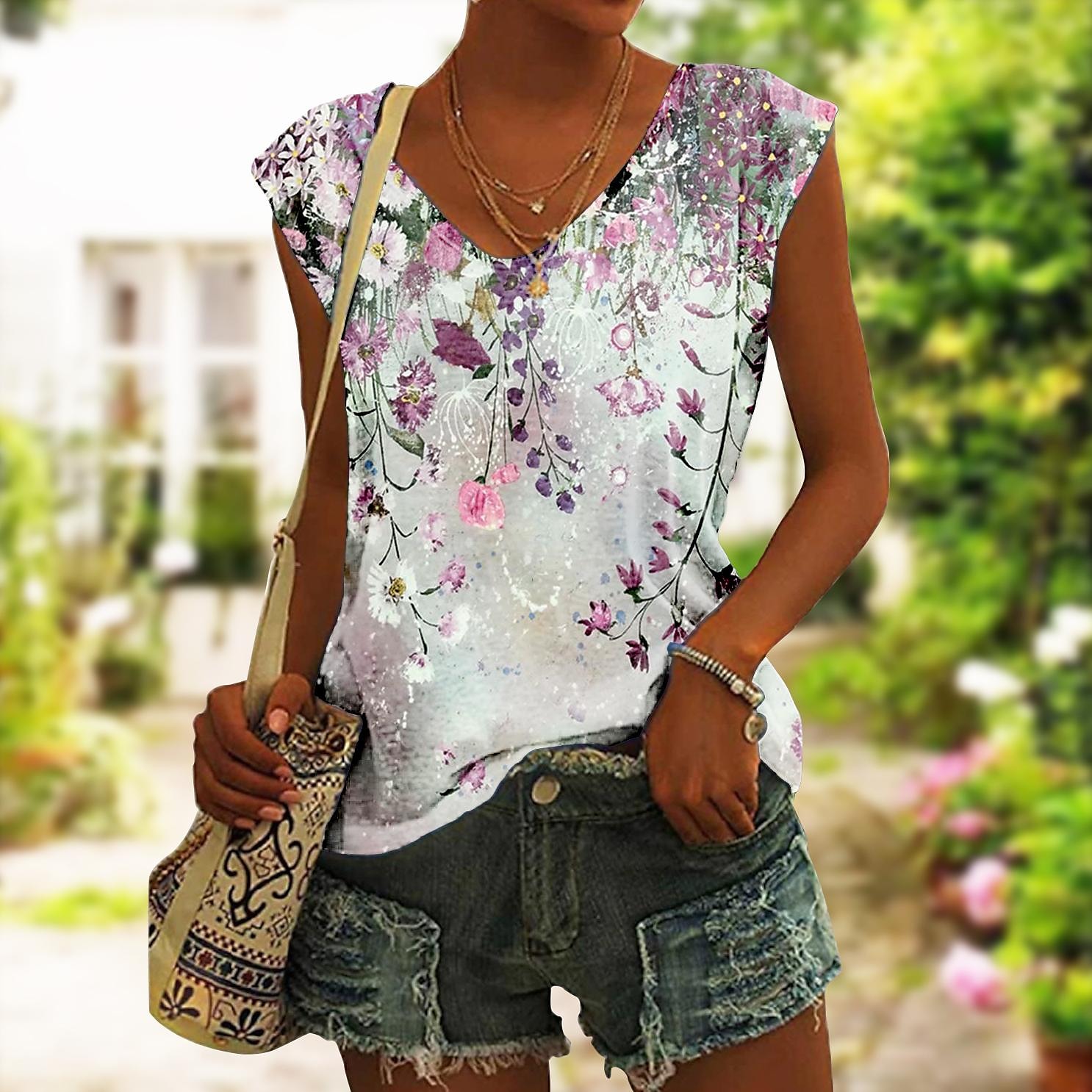 Gender:Women's,Style:Basic,Occasion:Holiday,Tops Type:Tank Top,Neckline:V Neck,Fabric:Polyester,Design:Print,Details:Without Lining,Sleeve Length:Sleeveless,Elasticity:Micro-elastic,Look After Me:Machine wash,Wet and Dry Cleaning,Washable,Top Length:Regular,Pattern:Floral,Theme:Floral,