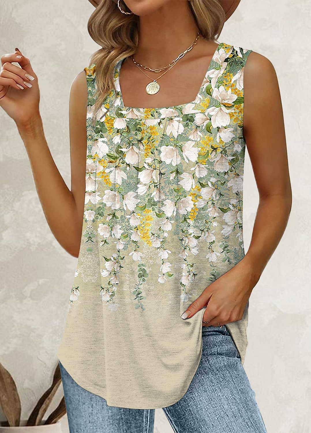 Gender:Women's,Style:Basic,Occasion:Casual,Holiday,Tops Type:Tank Top,Neckline:Square Neck,Fabric:Polyester,Design:Sequins,Details:Without Lining,Sleeve Length:Sleeveless,Elasticity:Micro-elastic,Look After Me:Machine wash,Wet and Dry Cleaning,Washable,Top Length:Regular,Pattern:Floral,Theme:Floral,